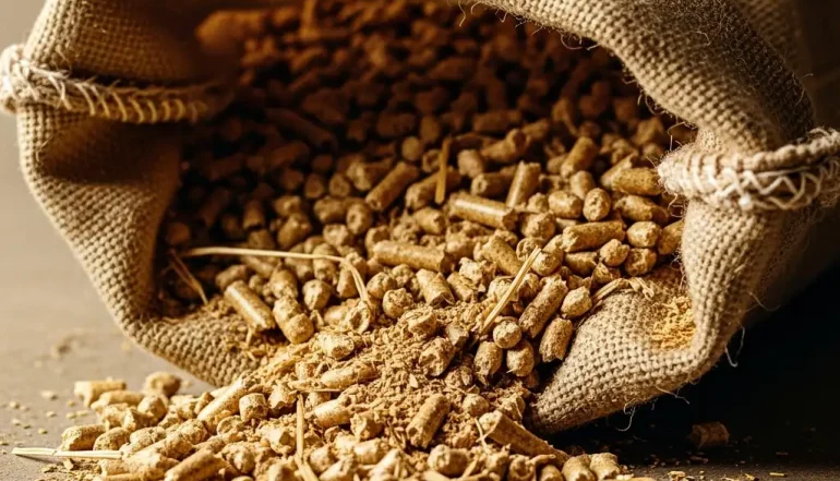 Diese aus Stroh hergestellten Pellets dienen als Tierstreu oder